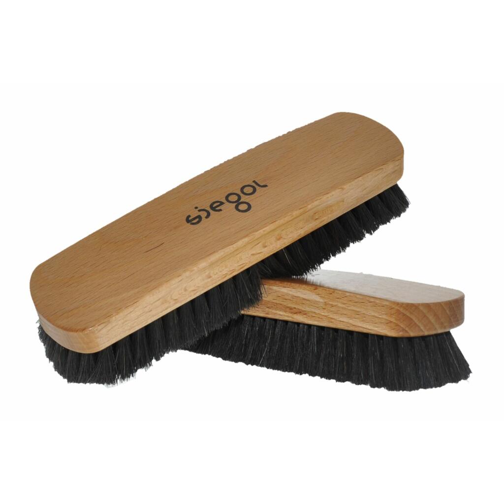 Die Siegol Glanzbürste Rosshaar ist ein unverzichtbares Werkzeug für alle Lederliebhaber, die ihren Schuhen und anderen Lederprodukten einen wunderschönen Hochglanz verleihen möchten. Mit ihrem Haarbesatz aus Rosshaar und einer Länge von 22 mm bietet sie die ideale Kombination für eine glänzende Oberfläche. Diese Glanzbürste ist für alle Arten von Leder geeignet und ermöglicht eine professionelle Polierung. Egal ob glattes Leder, Wildleder oder Nubuk, mit dieser Bürste können Sie einen eleganten und strahlenden Glanz erzeugen. Die Borsten der Siegol Glanzbürste sind aus hochwertigem Rosshaar handeingezogen. Dies gewährleistet eine gleichmäßige Verteilung der Borsten und eine effektive Reinigung und Politur. Das Rosshaar ist weich genug, um das Leder nicht zu beschädigen, und dennoch robust genug, um den gewünschten Glanz zu erzeugen. Der ergonomisch geformte Griff liegt gut in der Hand und ermöglicht eine einfache und präzise Handhabung. Mit sanften, kreisenden Bewegungen können Sie die Politur gleichmäßig auftragen und den Glanz auf dem Leder verstärken.